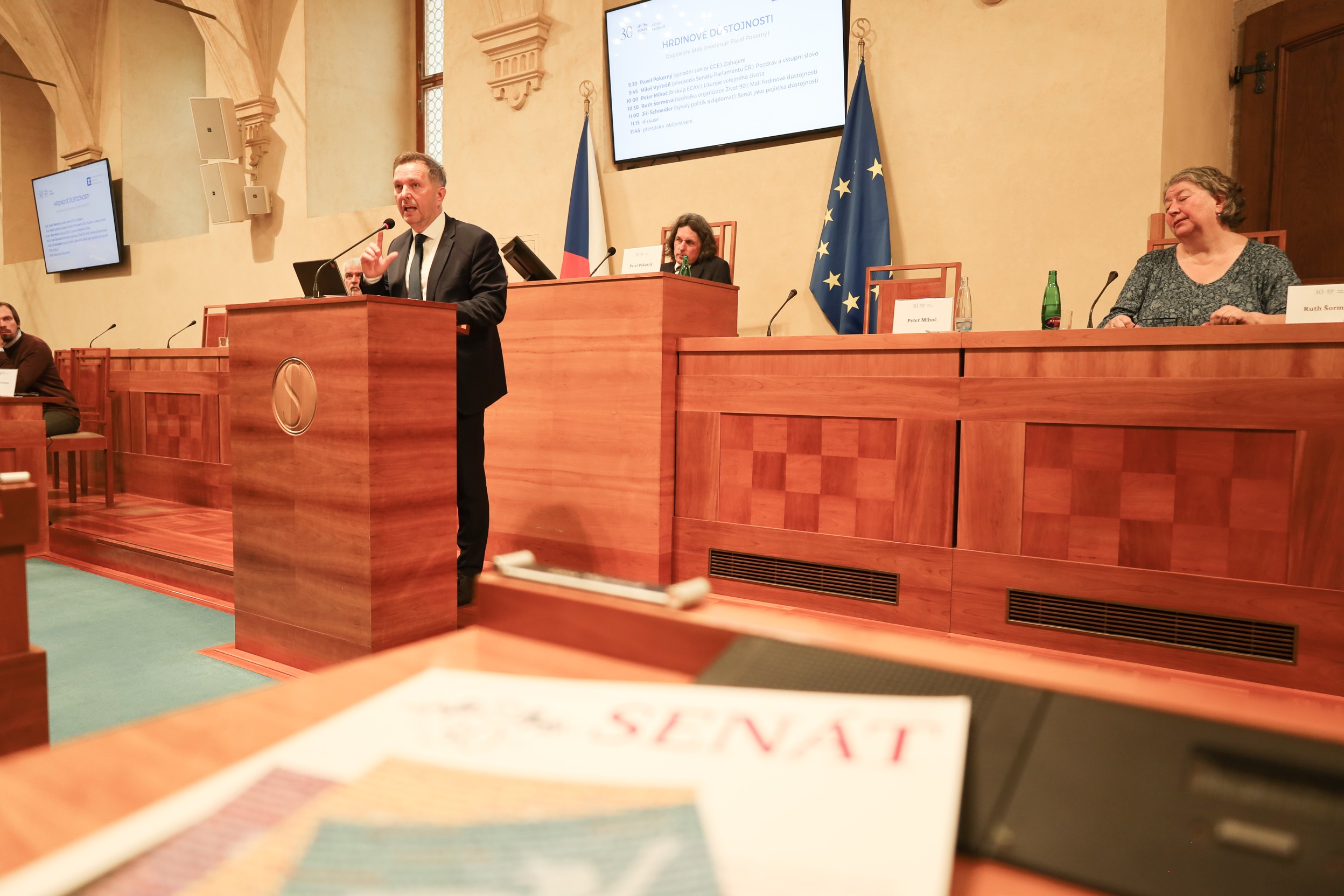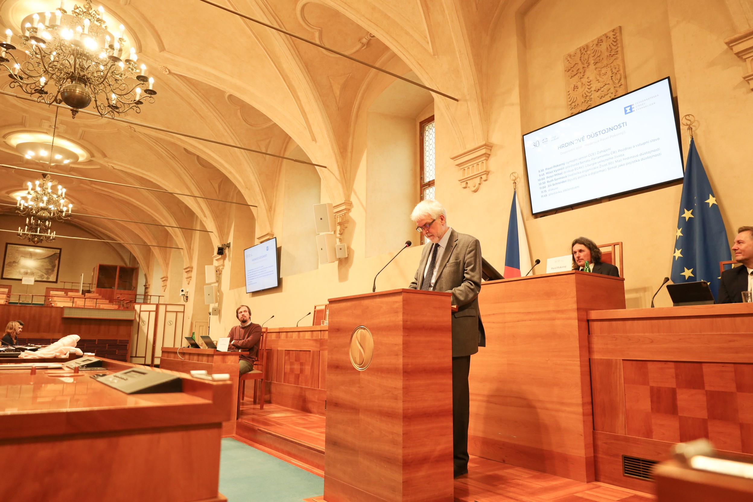 Do programu piateho ročníka senátnej konferencie sa premietlo aj tohtoročné jubileum hornej komory parlamentu, ktorá tvorí jeden zo základných pilierov štátu už 30 rokov. O Senáte ako poistke dôstojnosti hovoril vo svojom príspevku synodný kurátor/dozorca ČCE a bývalý diplomat Jiří Schneider.